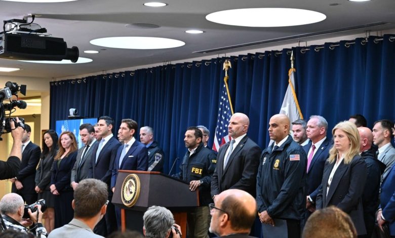 FBI Director Kash Patel pronounces two federal indictments in opposition to greater than 30 defendants for his or her alleged involvement in two separate unlawful poker and sports activities betting schemes the place odds had been rigged in New York on Thursday, Oct. 23, 2025. Latest polling suggests the general public’s opinion of authorized sports activities betting continues to worsen. (Picture: FBI New York)