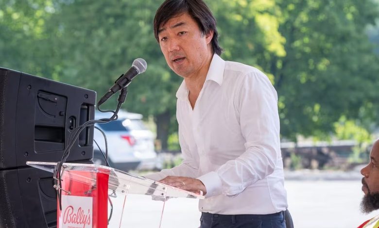 Bally’s Company Chairman Soo Kim speaks on the groundbreaking ceremony of Bally’s Chicago in August 2024. Initially deliberate to open earlier than the top of 2026, Bally’s is in search of a 12-month extension to open the $1.7 billion vacation spot. (Picture: Bally’s Company)