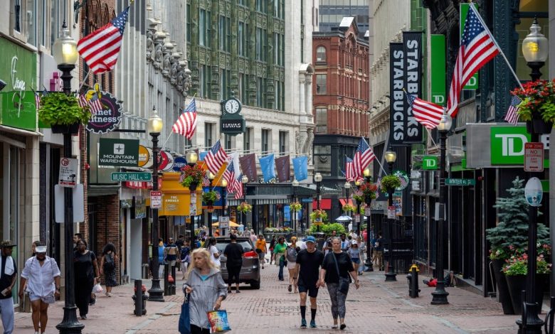 A bustling Summer time Avenue in Boston’s Monetary District is pictured on Feb. 17, 2024. Sports activities bettors in Massachusetts may quickly see nice adjustments to their sportsbook accounts. (Picture: Shutterstock)