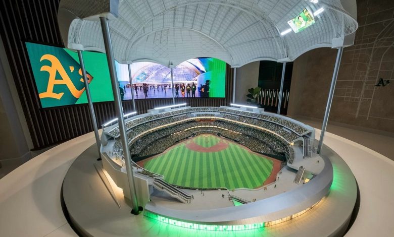 Miniature Mannequin of Las Vegas A’s Stadium on Show in Season Ticket Gross sales Workplace