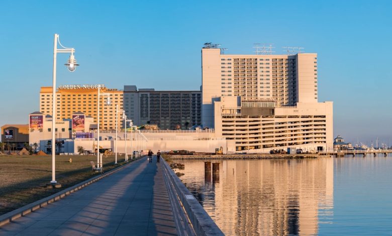 A concrete walkway alongside the Biloxi waterfront is pictured in 2022 with the Margaritaville Resort and Golden Nugget Resort & On line casino within the distance. Laws to carry on-line sports activities betting to Mississippi has handed the state Home of Representatives. (Picture: Getty)