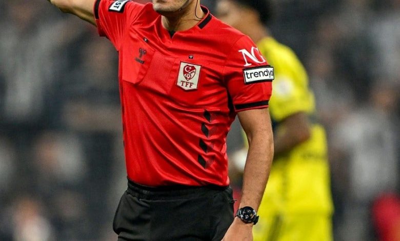 A Turkish Süper Lig referee throughout a latest recreation between Besiktas and Fenerbahce. Seven Süper Lig match officers are caught up in a large betting scandal, in line with the TFF. (Picture: Getty)