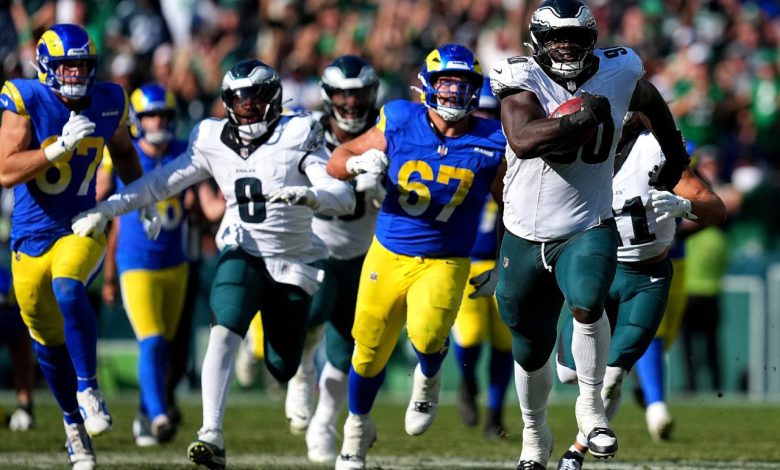 The Eagles sealed their comeback 33-26 win over the Rams with a blocked 44-yard discipline aim with three seconds left which the Eagles 336-pound defensive deal with Jordan Davis then rumbled again for a TD. Philadelphia not solely survived the Rams on the ultimate play however additionally lined –3.5 after returning it for the landing.